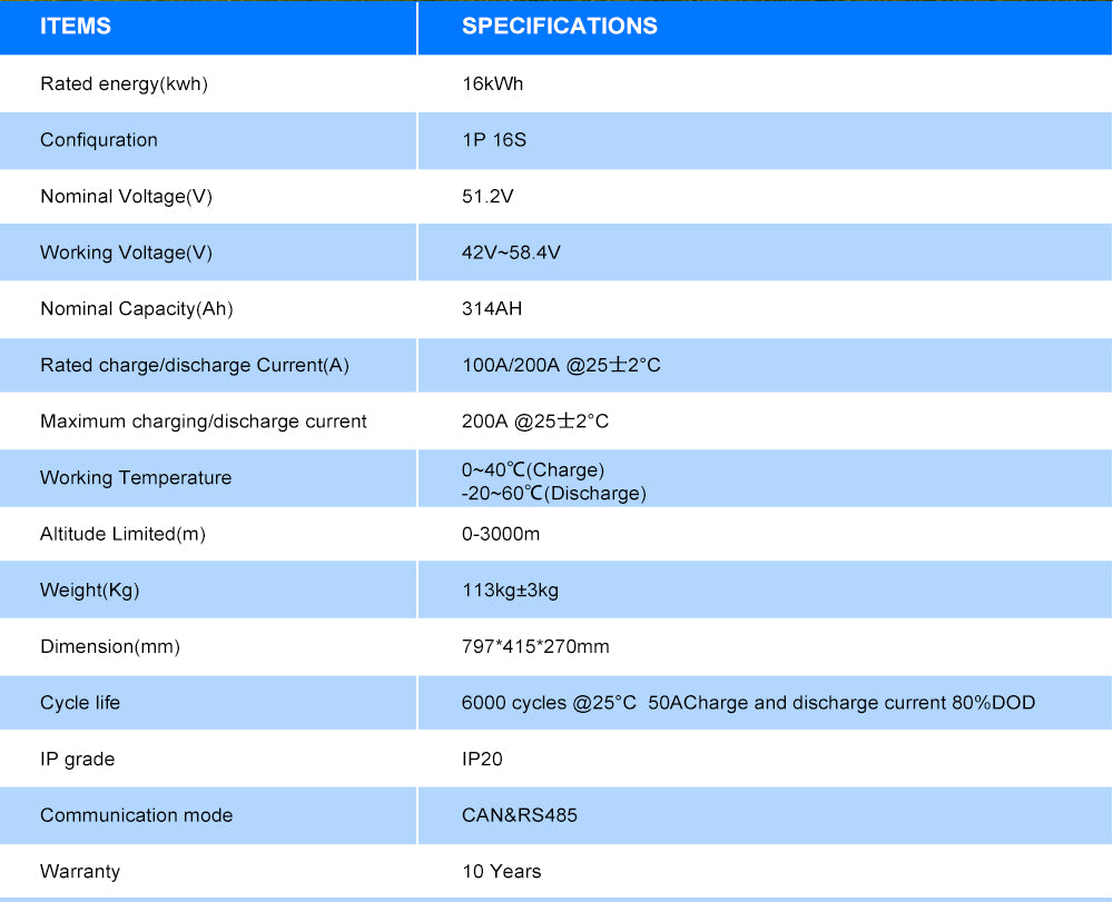 16kWh 51.2V314AH LifePO4 Battery Pack For Solar EU DDP